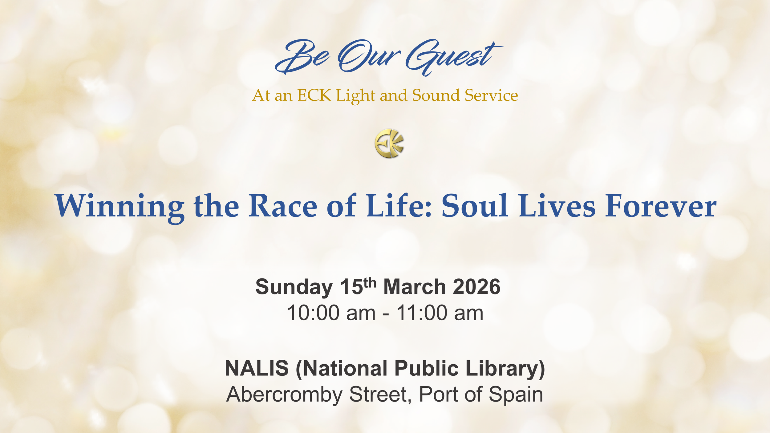 The ECK Light and Sound Service is a community event offered by Eckankar for spiritual seekers of all faiths and religious backgrounds. It is an uplifting event where you can reflect on and connect with the divine aspect within yourself.